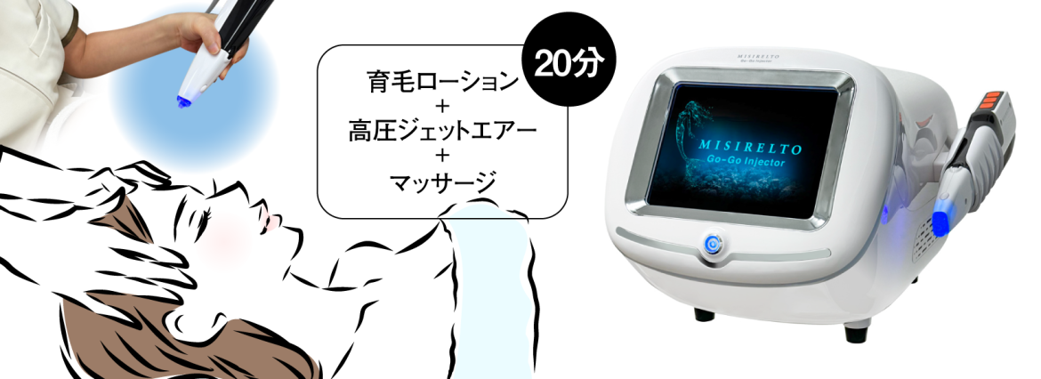 | スカルプインジェクター頭皮ケアプラン 【1回20分】 育毛ローション ▶︎ エアーインジェクター ▶︎ 頭皮マッサージ 定価 体験価格 4,200円(税込4,620円) |
